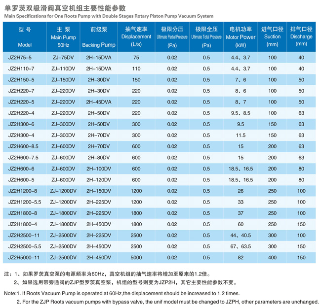 羅茨滑閥真空機組點連接可查機型配組和各類參數(shù):