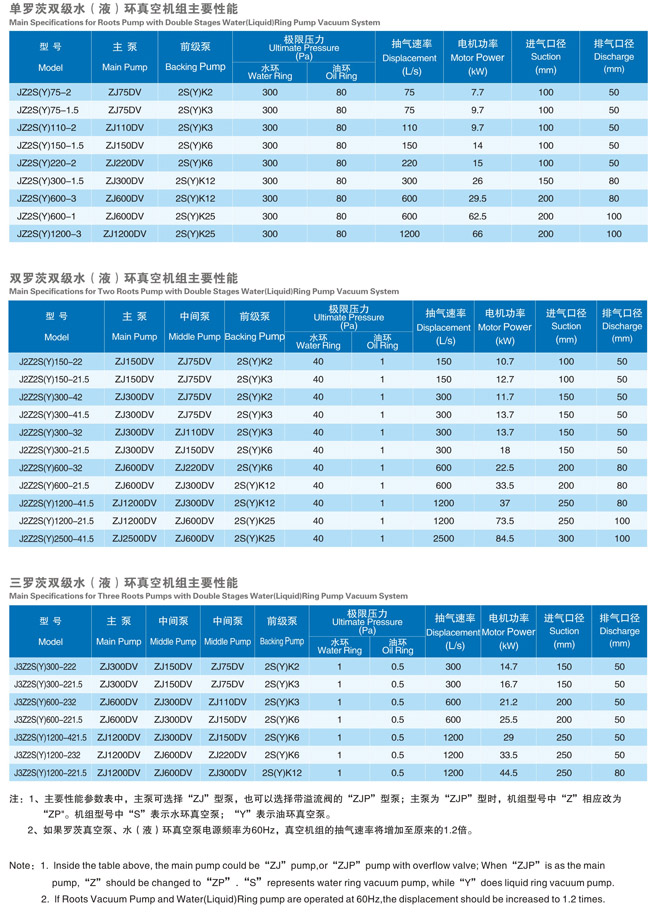 一、羅茨水環(huán)真空機組的最大抽速由主泵(羅茨泵)抽速決定;